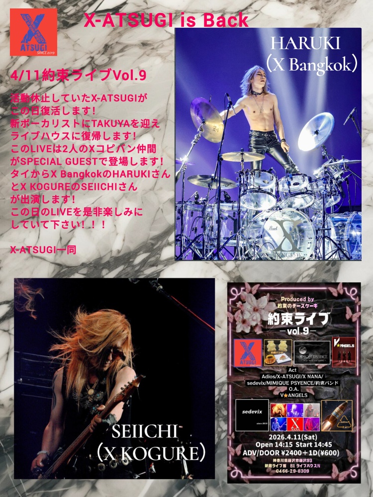 X-ATSUGIはベーシストを探しながらLIVE活動を再開する事に致しました!